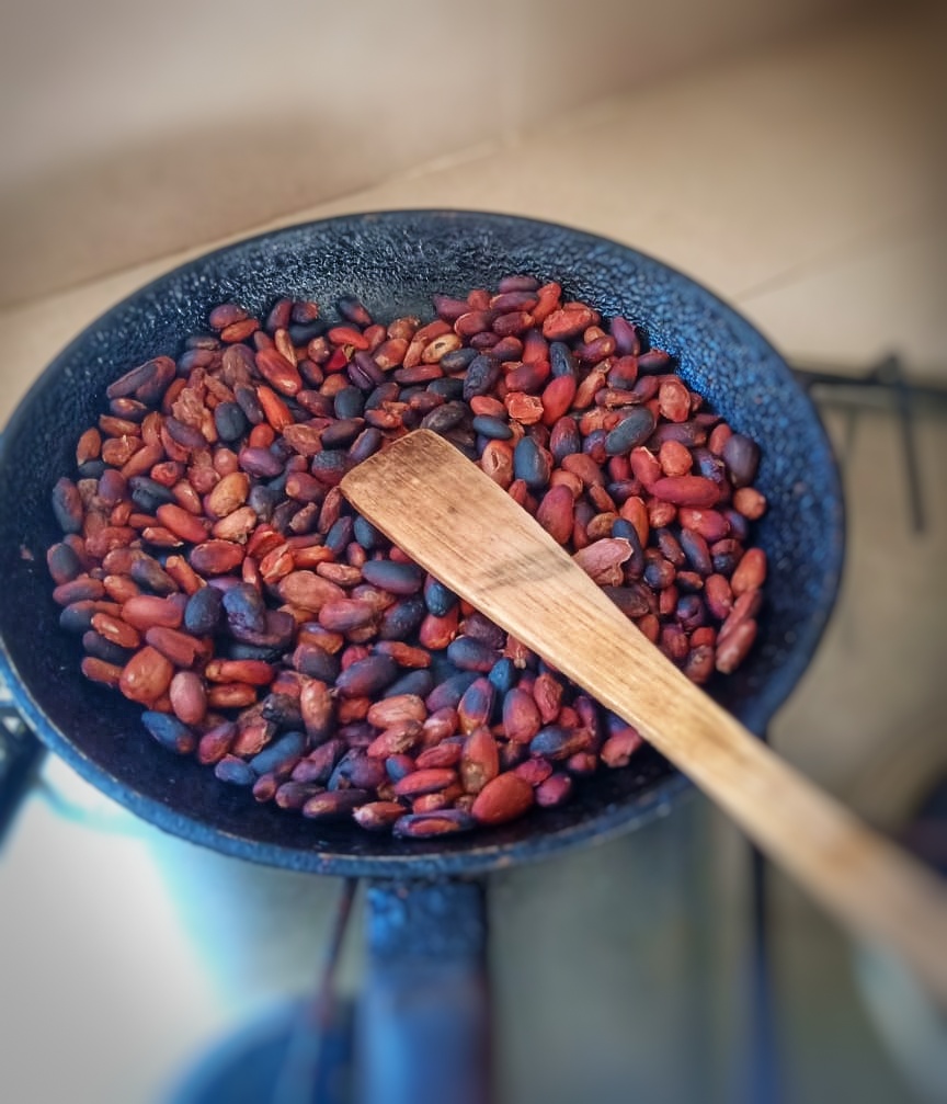 Les fèves sont grillées dans une poêle pendant 15 minutes sur feu moyen ,c’est la torréfaction.
